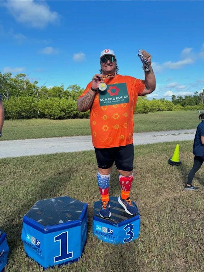 CT Wike lives on Snell Isle, in St. Petersburg, FL at four feet above sea level. Hurricanes Helene and Milton are the most recent punctuations in a life of overcoming huge obstacles. You see, Wike has lost over 100 pounds over the past few years from his 503-pound peak weight, when his doctor told him he would soon die if he didn’t make some big changes. He now competes in triathlons and will do his first Ironman in 2026 in Salem, OR.