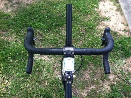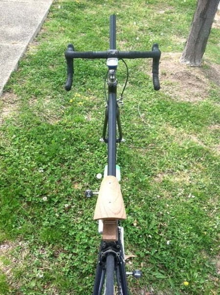 You remember the tiller aerobar? I've been playing around with it ever since I got it but was never perfect until I got the saddle design worked out. It's too sensitive, so far, to changeable winds to be practical overall, but on a calm day or a steady breeze it works. There are no forearm pads. Don't really need them. My wrists touch the bars but there's really no weight on them, or on the tiller either really. My other bike needs some work so I haven't tried the tiller on it outside yet. It should at least be more stable since the BB height is 4cm lower.