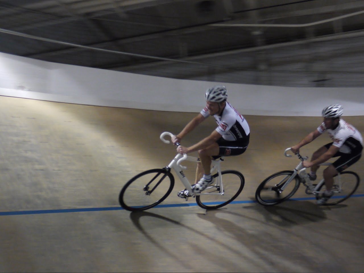 [caption id="attachment_26" align="aligncenter" width="300" caption="Steve Stewart at the Boulder velodrome and his new magnesium track bike"]
